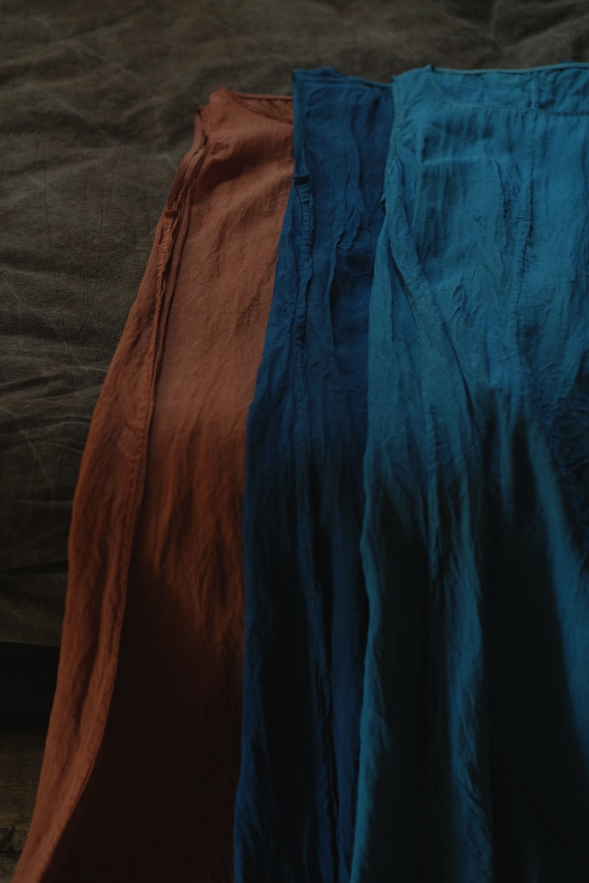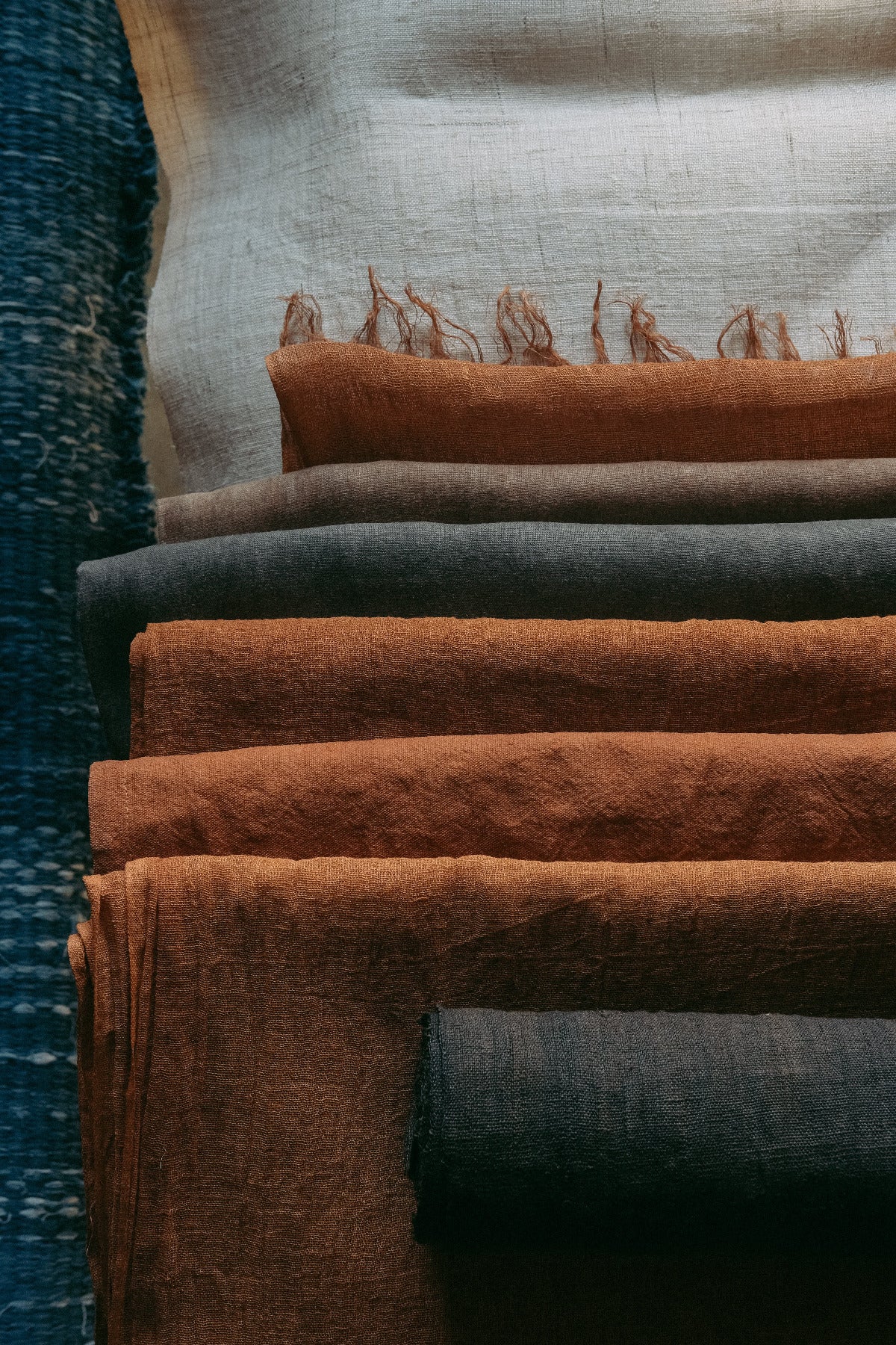 In my textile practice, I use plant dyeing to let each piece unfold slowly, guided by process and by the natural character of each material.